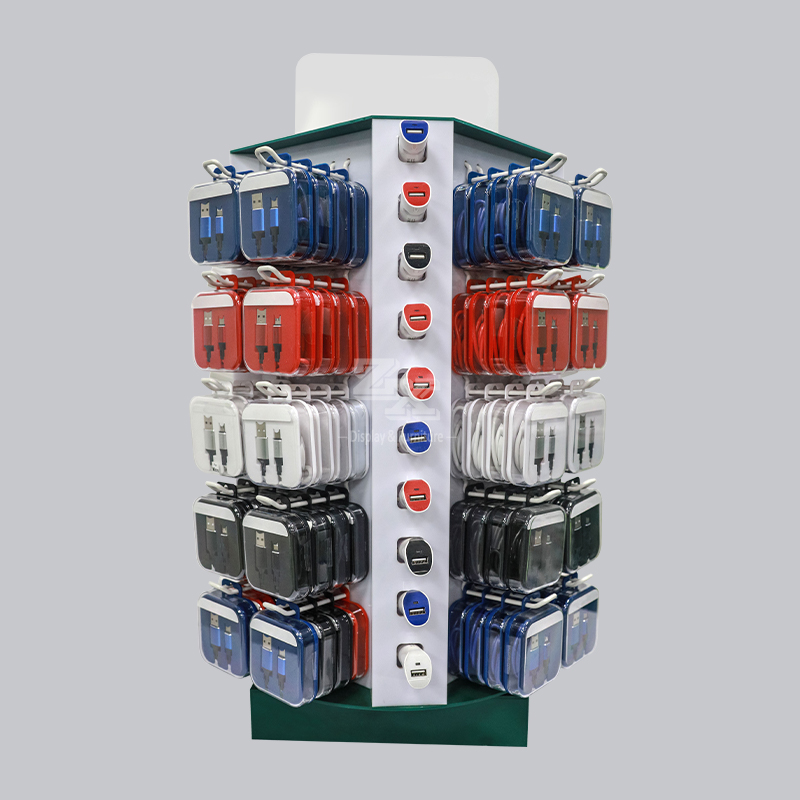 Tabletop Rotating Display Stand with Hangers for USB Cable Accessory Display