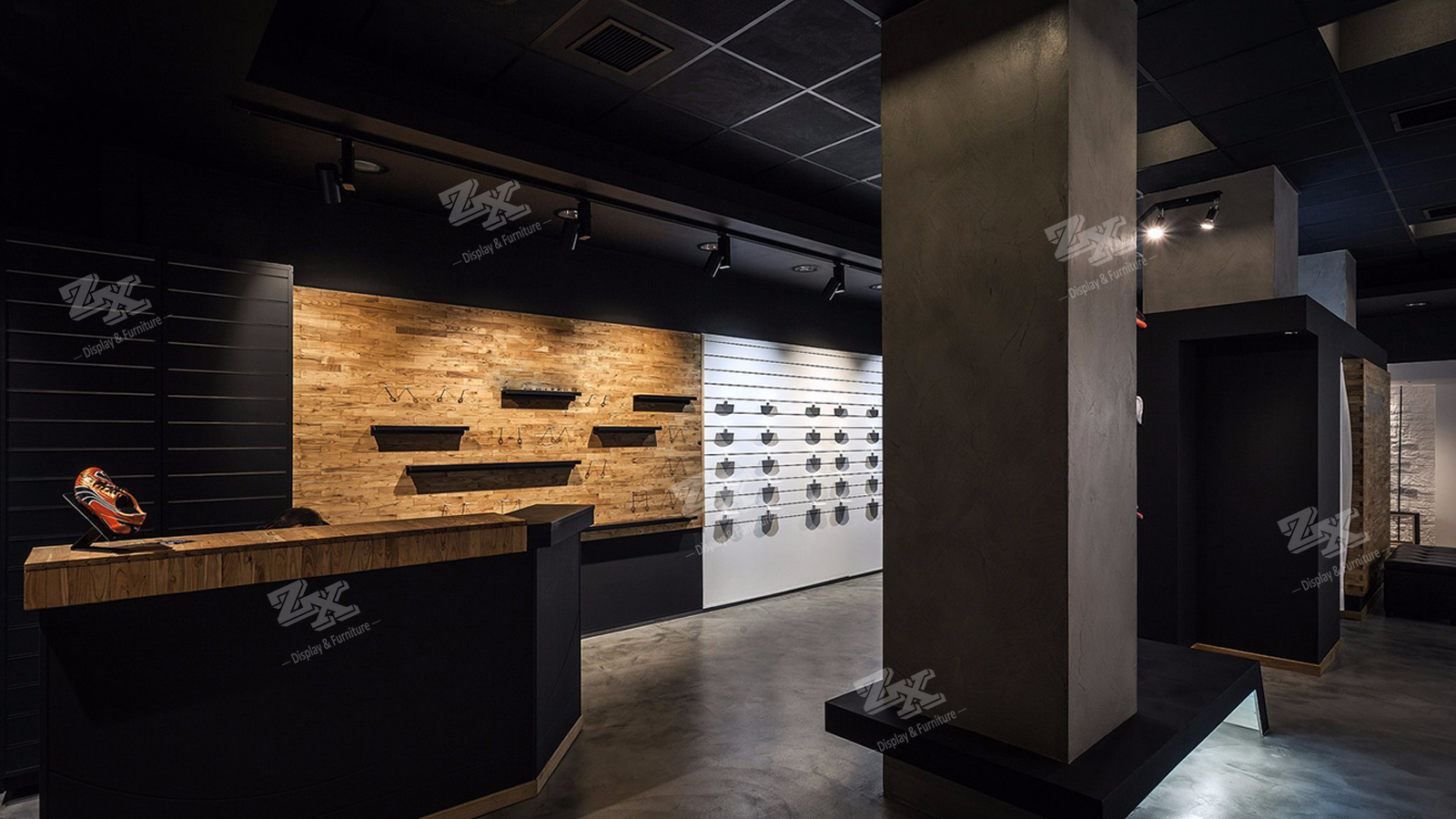 Sports Shoe Shop Interior Design Slat Wall Display for Sports Shoe Display Sportswear Shop Fittings