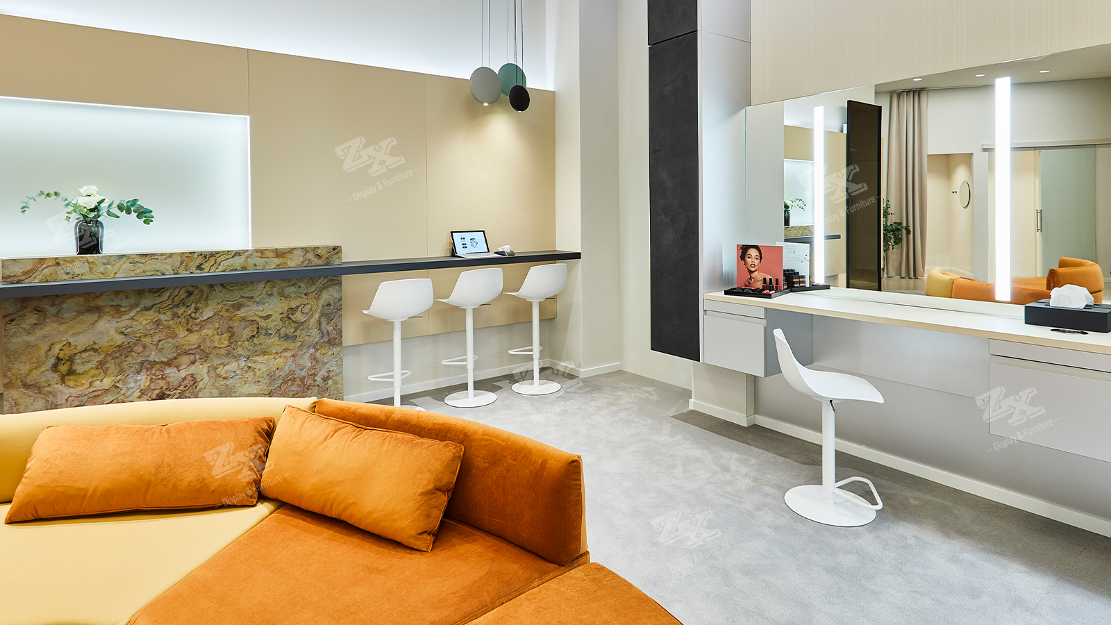 Tags: luxury shop fittings, luxury beauty shop fittings, display cabinet, display table, shop counter, luxury beauty shop design