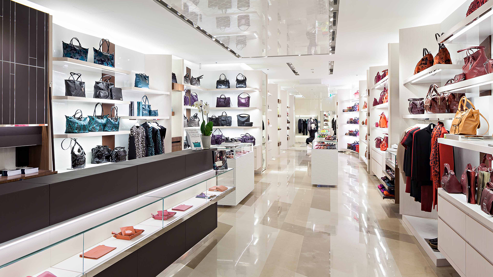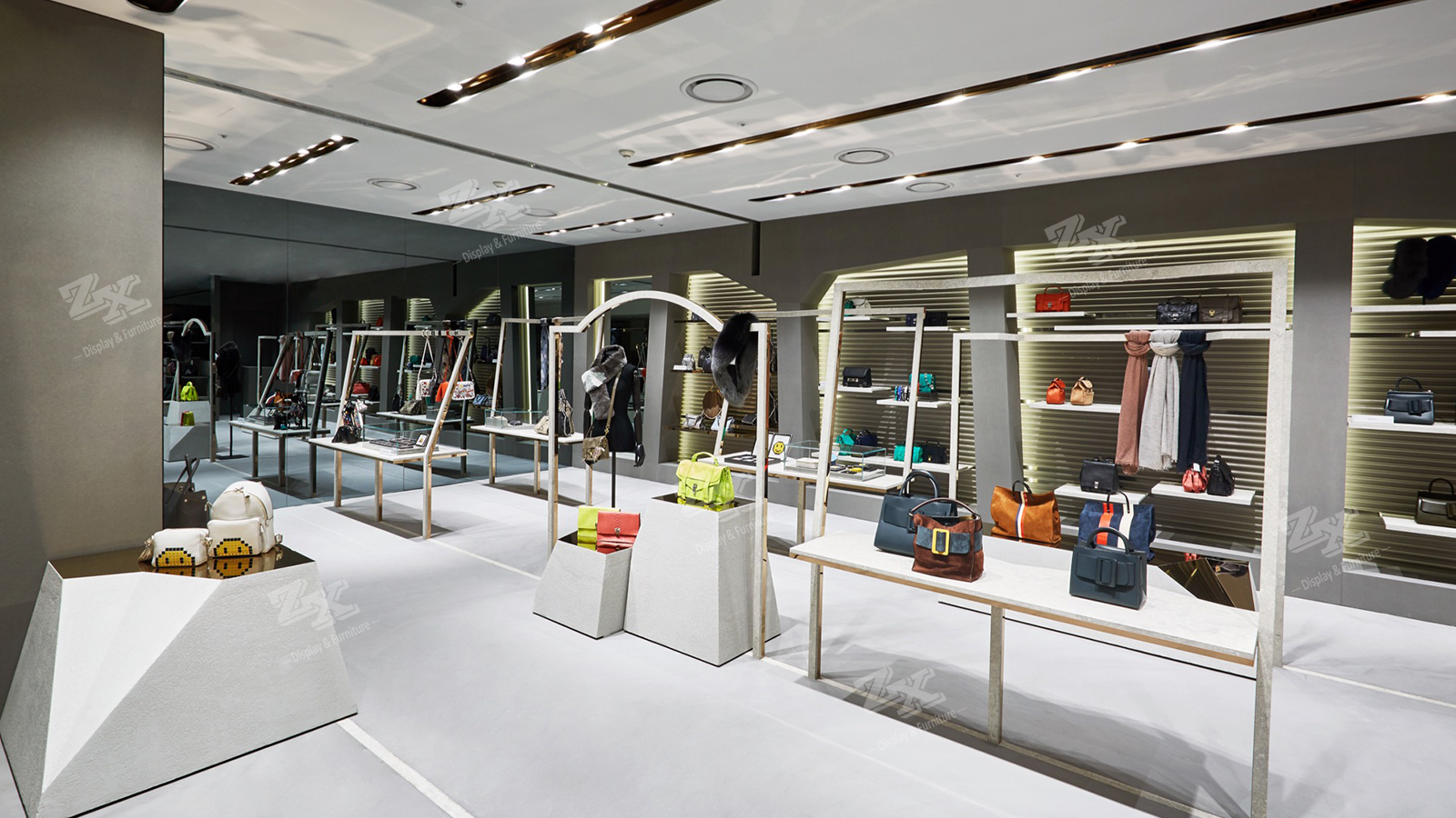 Luxury Store Fixtures Wall Display Shelves for Luxury Boutique Bag Store Interior Display