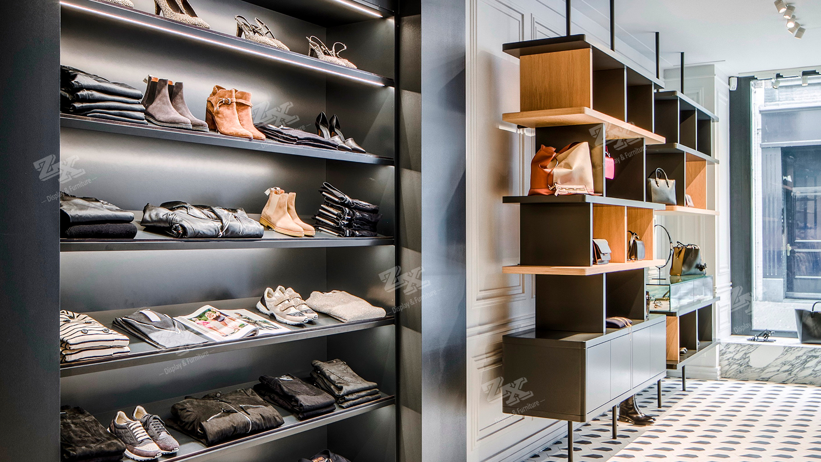 Shop Fitting Handbags and Shoe Store Fixtures Display Shelves Cabinets with LED