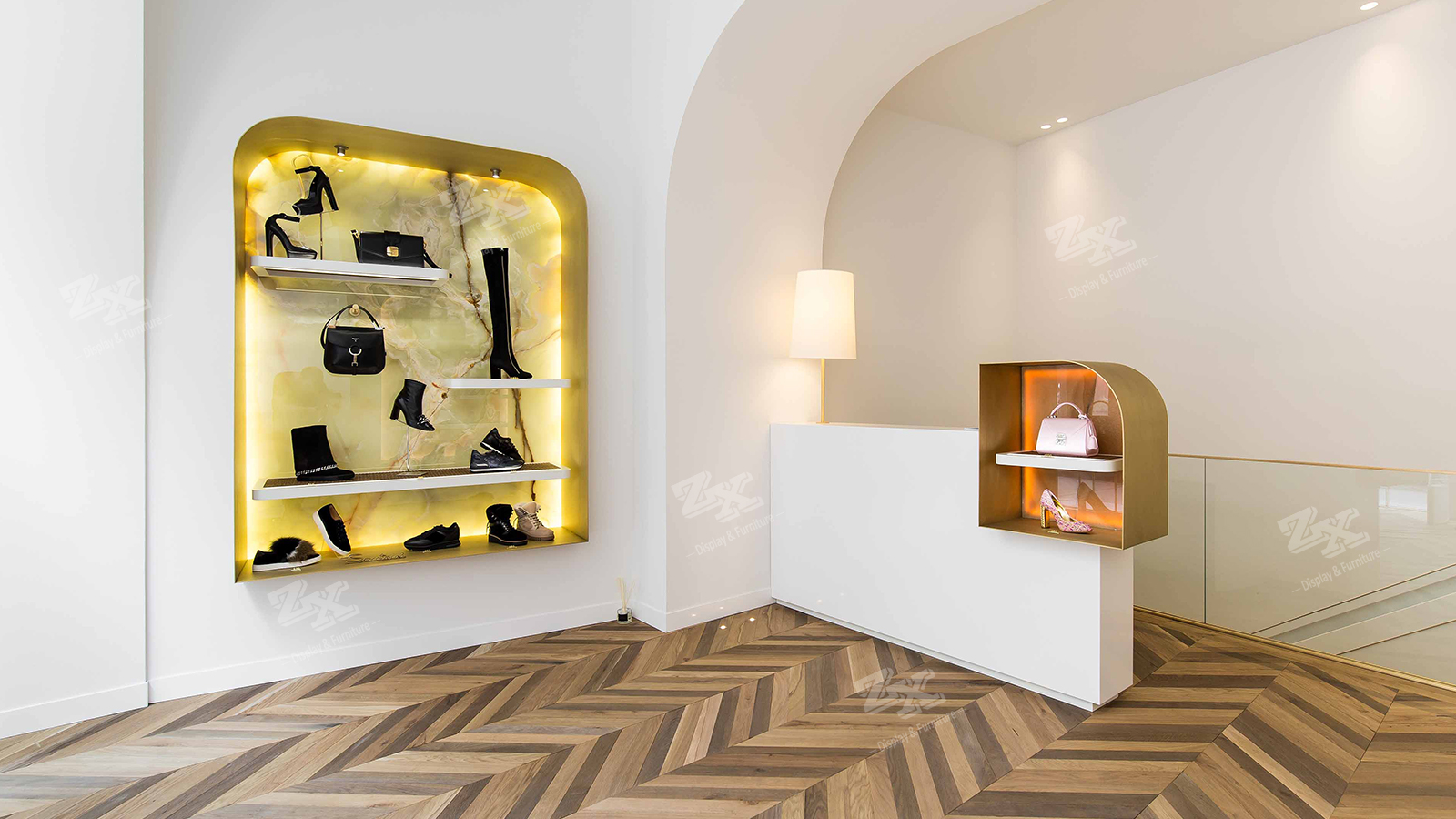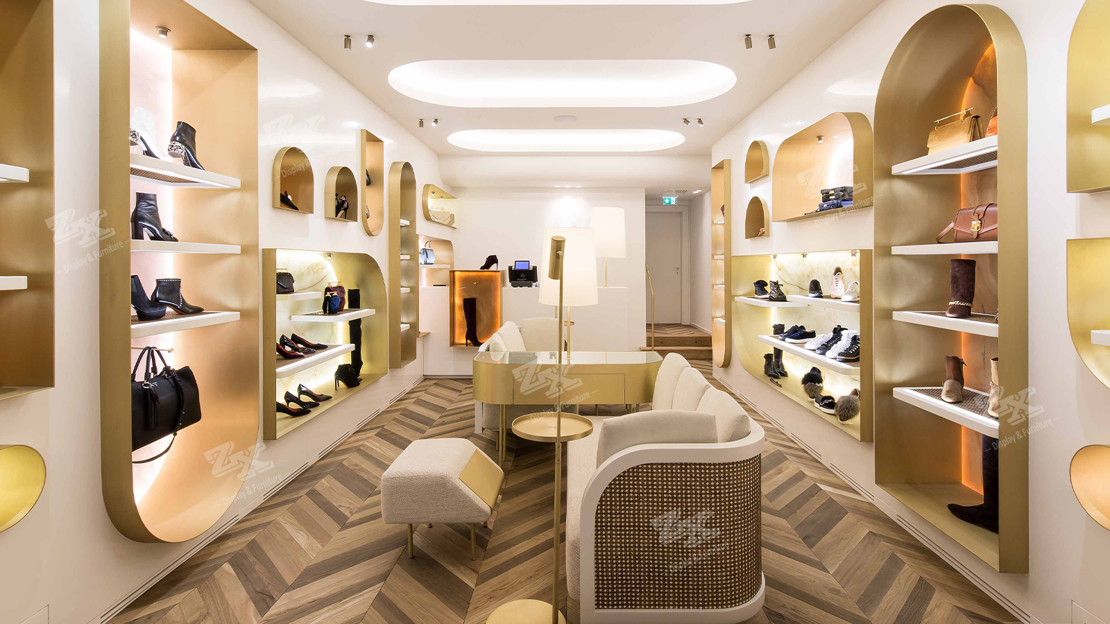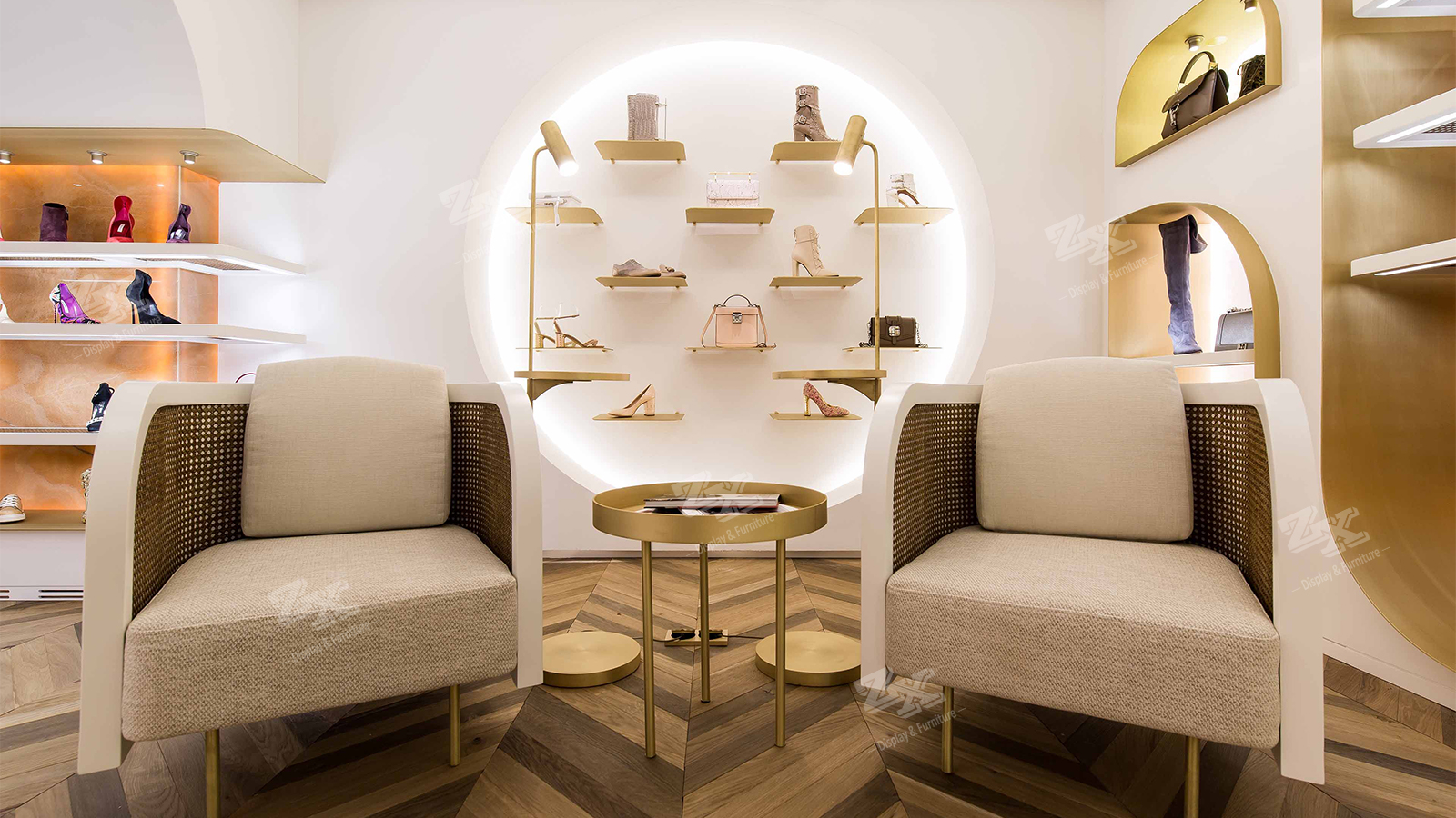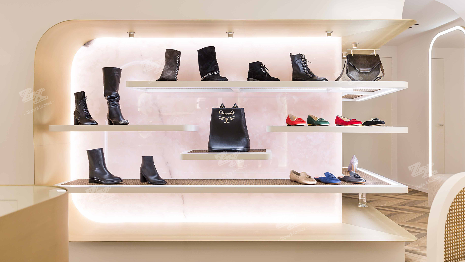 Shop Fitting Handbags and Shoe Store Fixtures Display Shelves Cabinets with LED