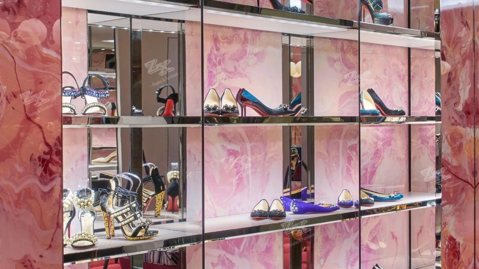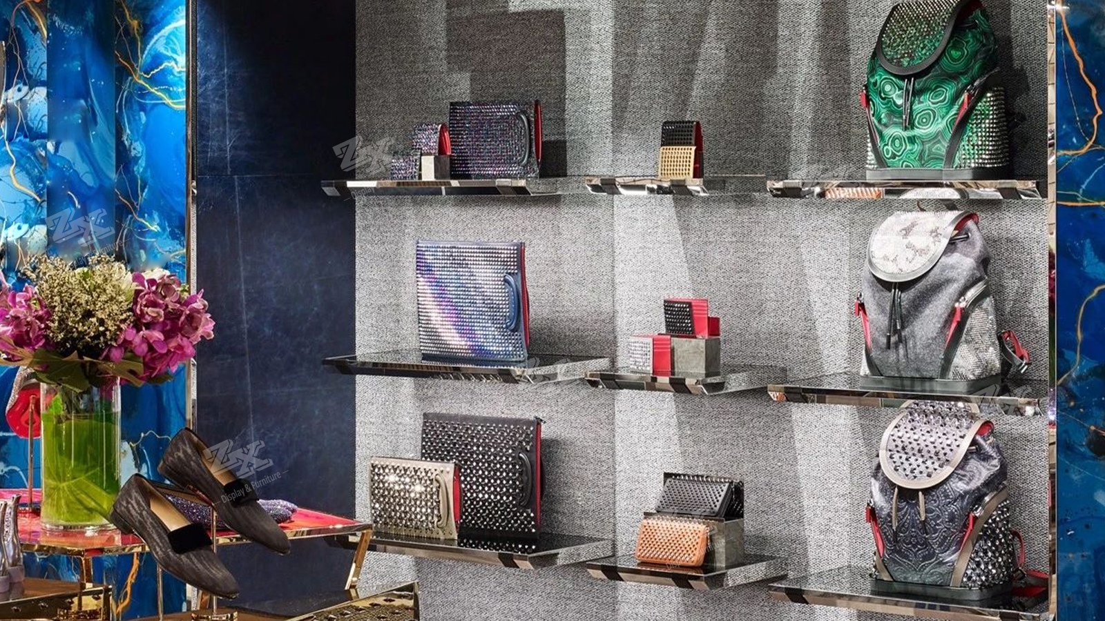 Tags: shoe shop fixture, shoe shop fittings,boutique store display, shoe display cabinet, bag display shelf, luxury shop fittings