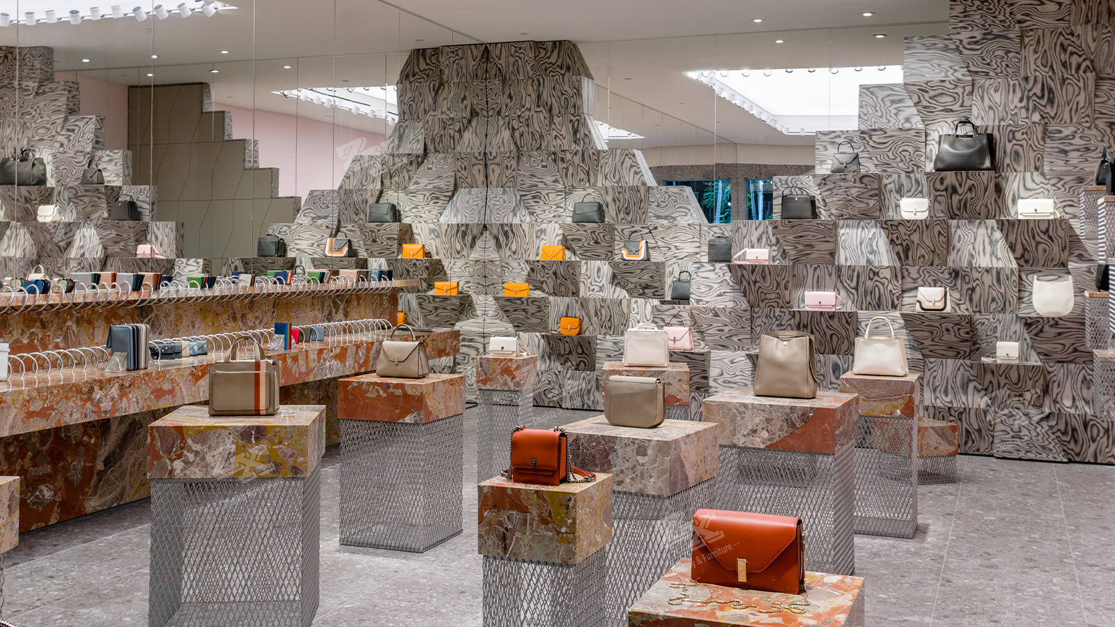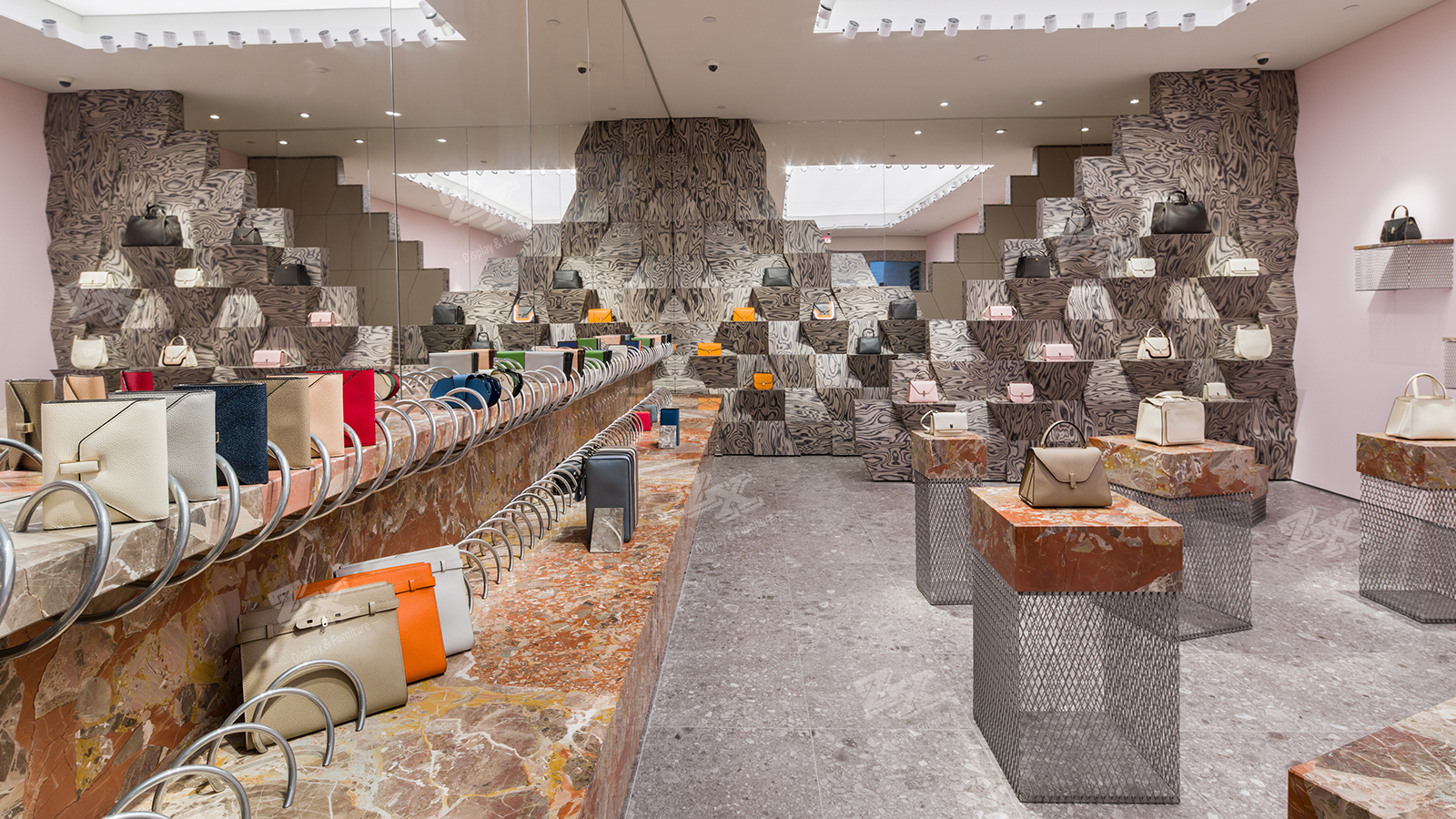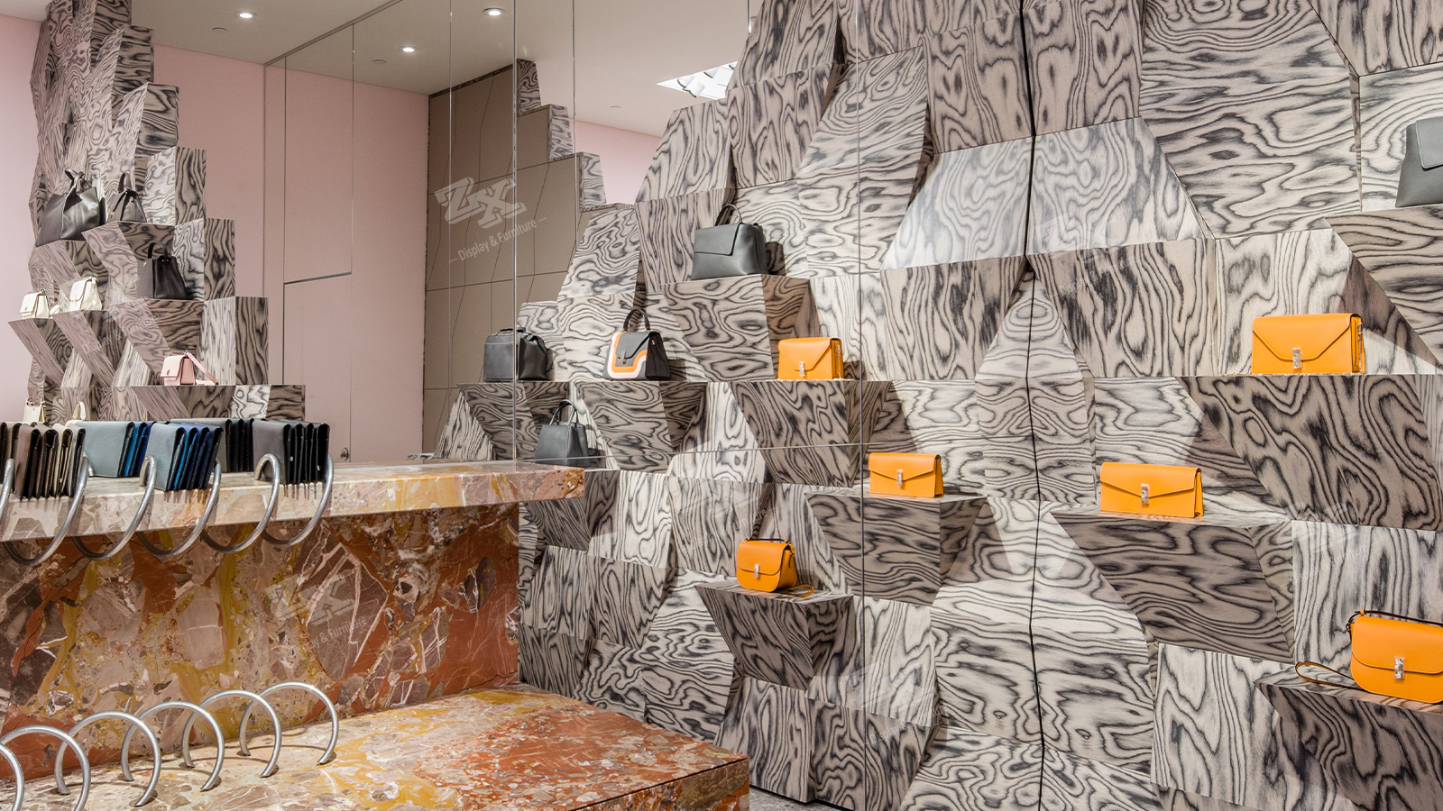 Tags: bag display stand, bag display shelf, bag display with marble, bag shop display, marble display stand