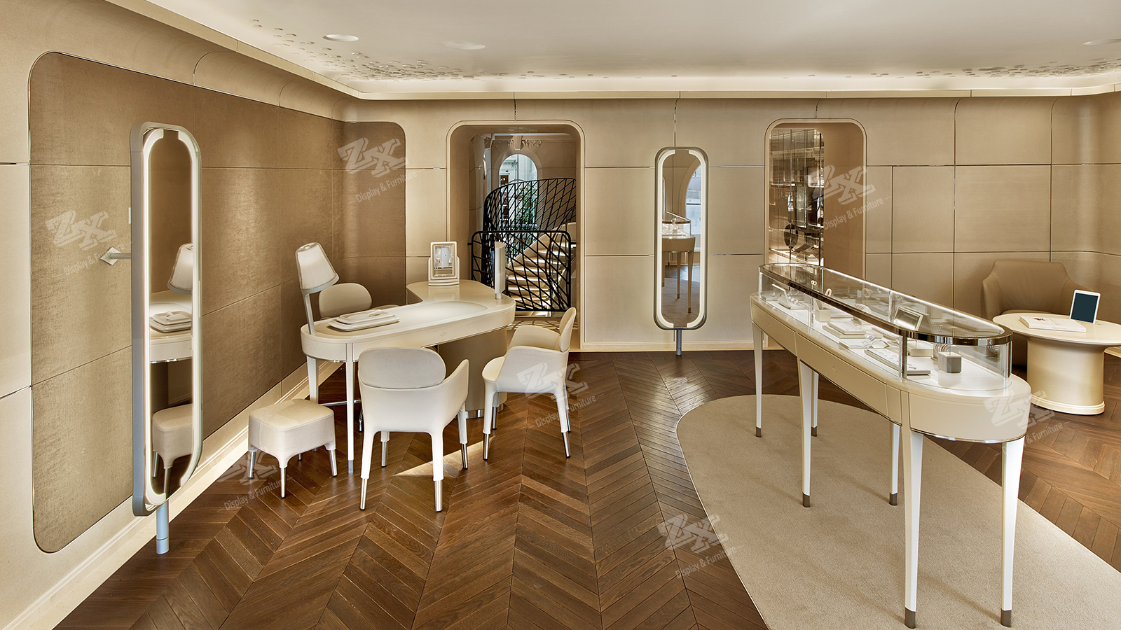 Luxury Jewelry Store Curve Shape Jewelry Display Showcase Counter for Jewelry Showroom Fittings