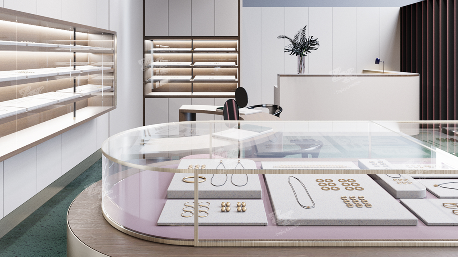 Jewelry Showroom Center Large Curve Shape Display Counter Showcase for Jewelry Showroom Display
