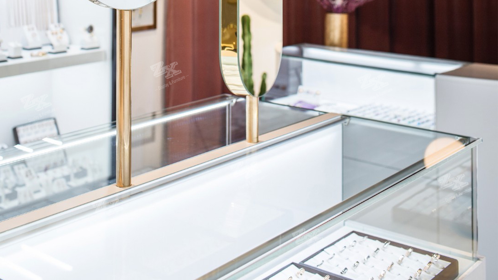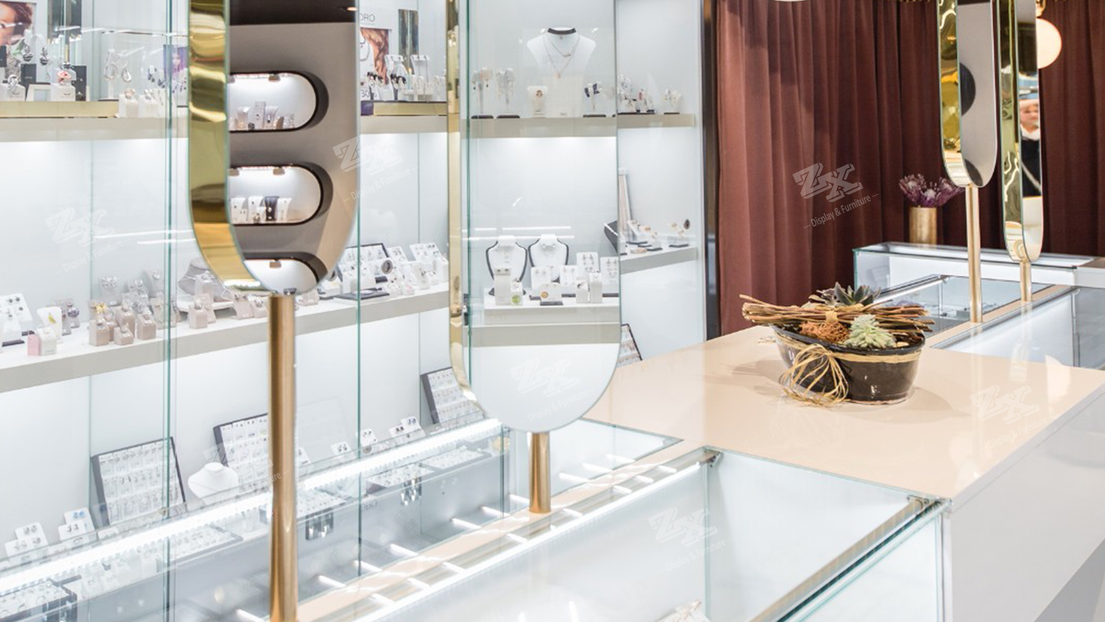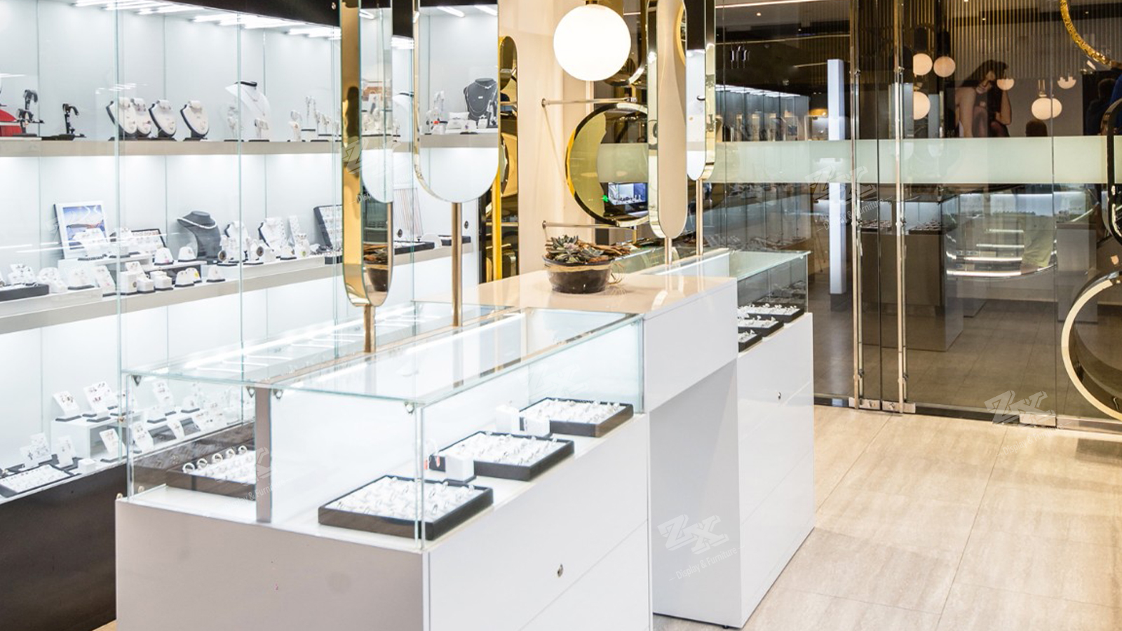 - Tags: double sided jewelry showcase, jewelry counter, jewelry store design, jewelry display, jewelry wall display cabinet, jewelry store fixtures, jewelry shop fittings, jewelry store design