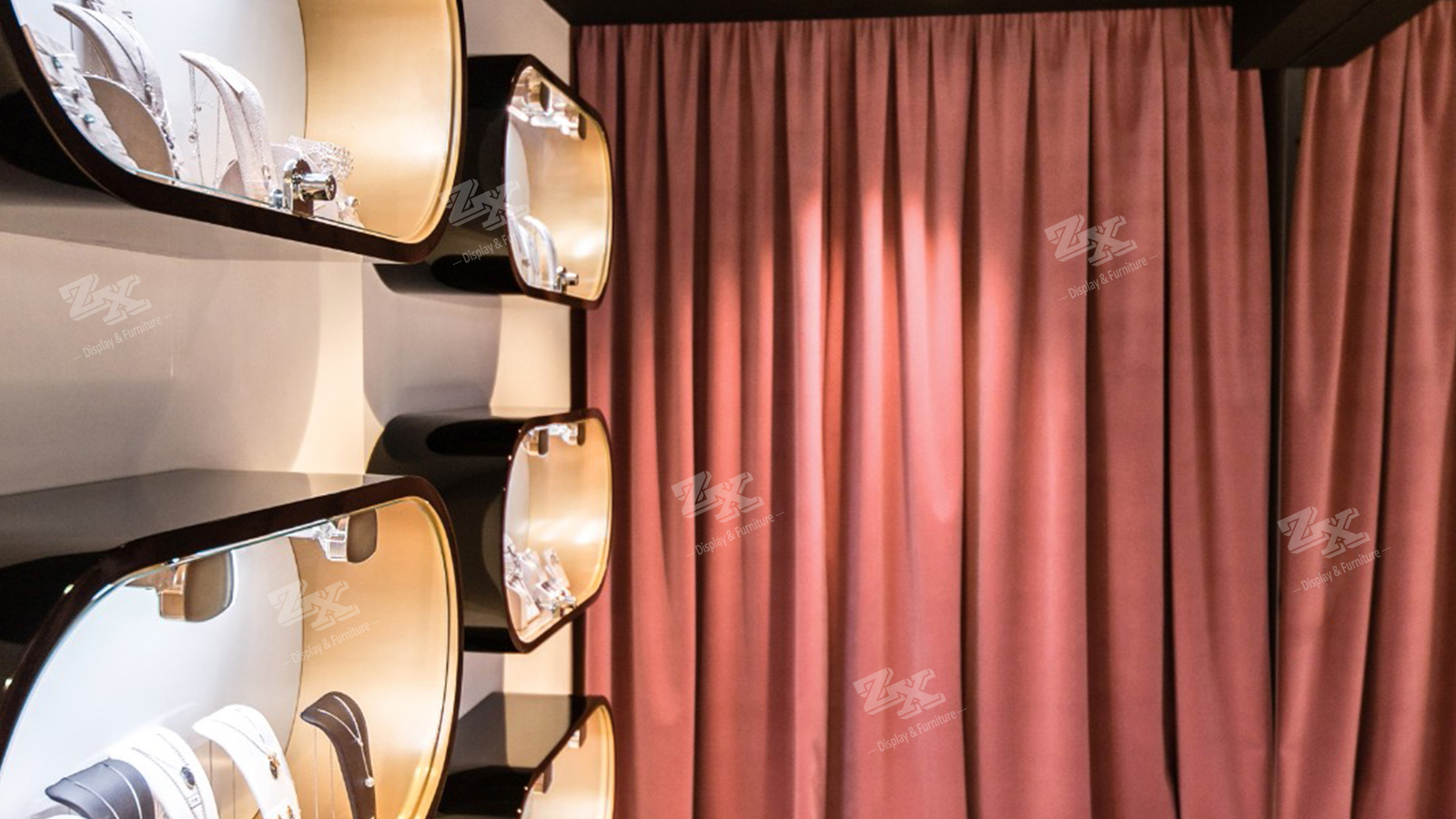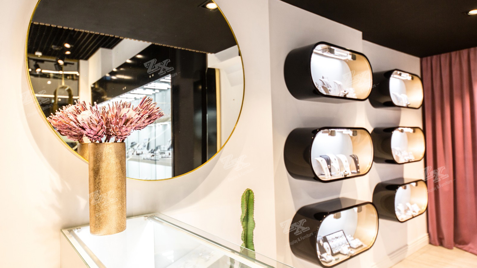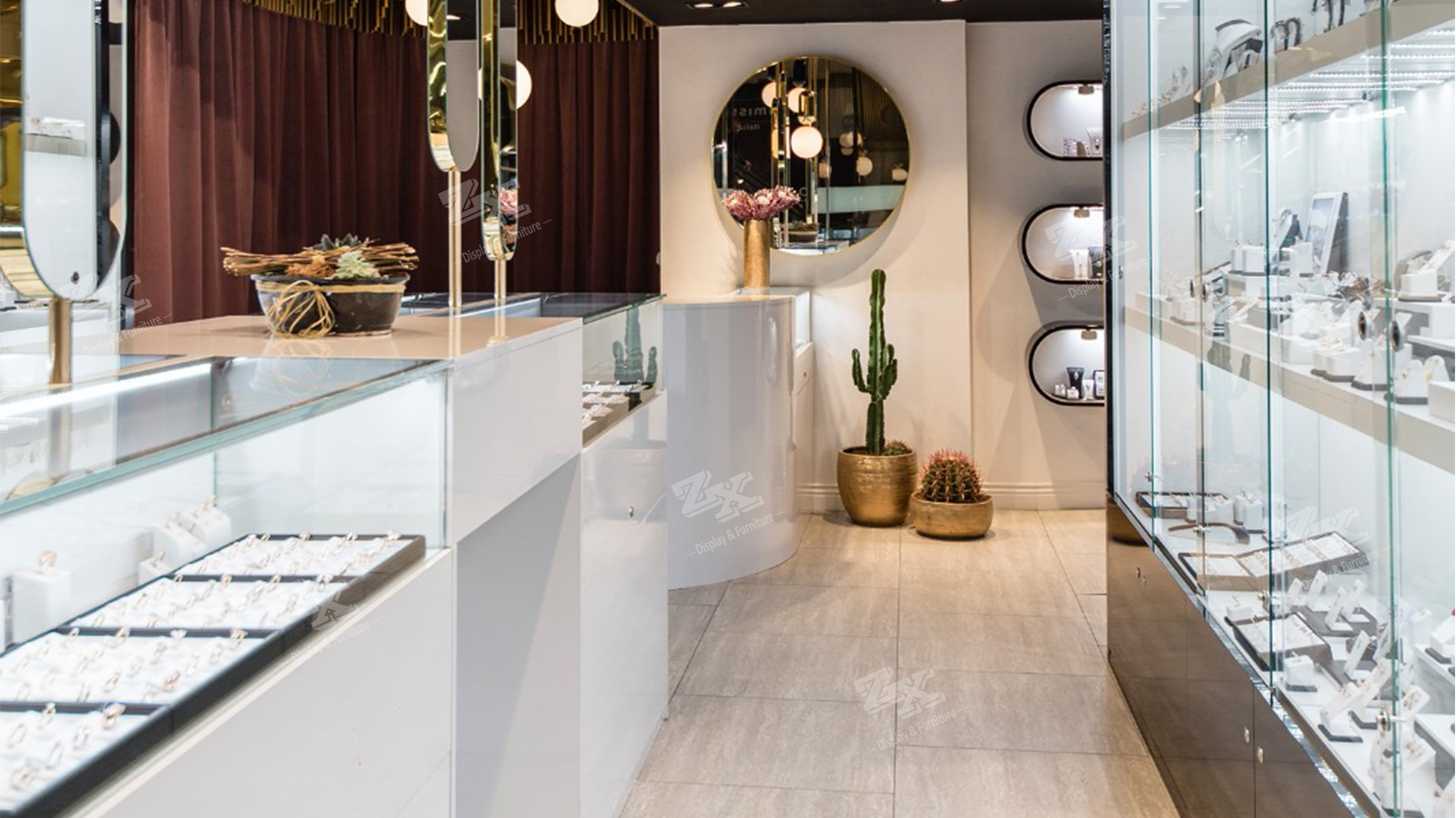 - Tags: double sided jewelry showcase, jewelry counter, jewelry store design, jewelry display, jewelry wall display cabinet, jewelry store fixtures, jewelry shop fittings, jewelry store design