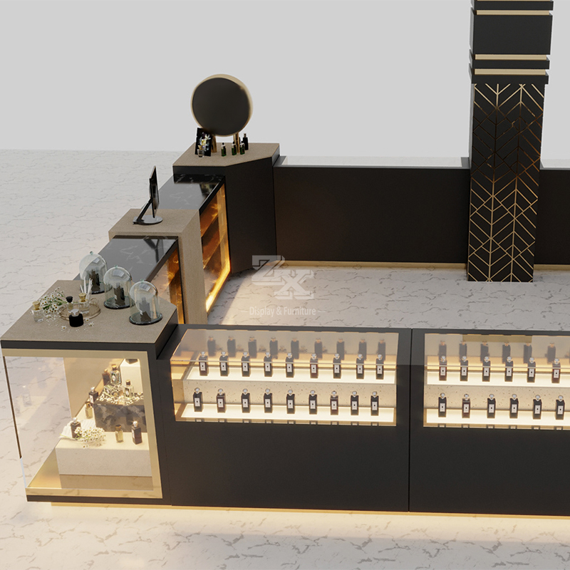 perfume showcase, perfume kiosk, perfume shop counter, perfume display cabinet, perfume display, perfume store display
