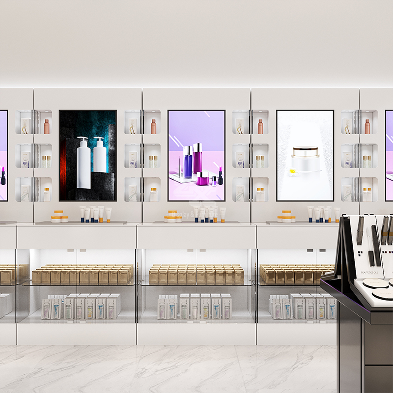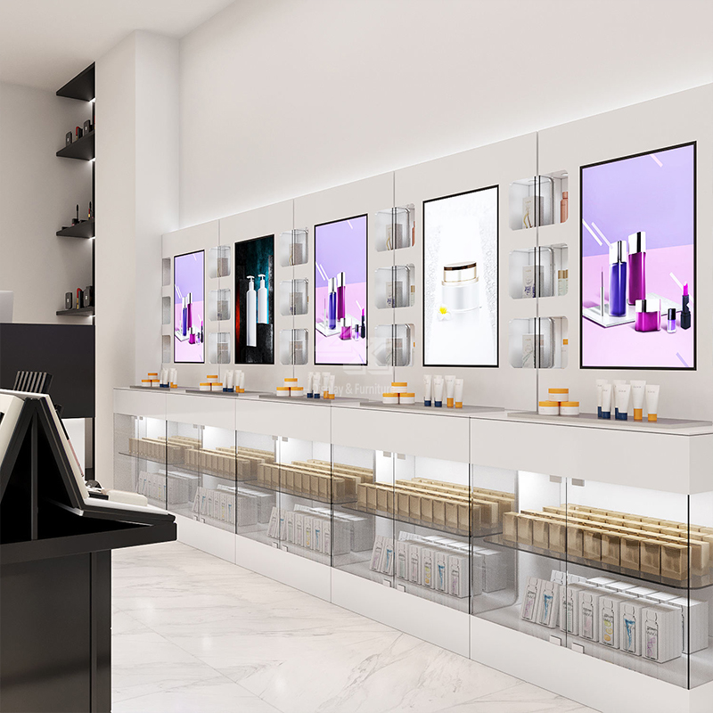 Customized Cosmetics Shop Fitting Display Cabinet with LED Light Box Cosmetics Retail Shop Display