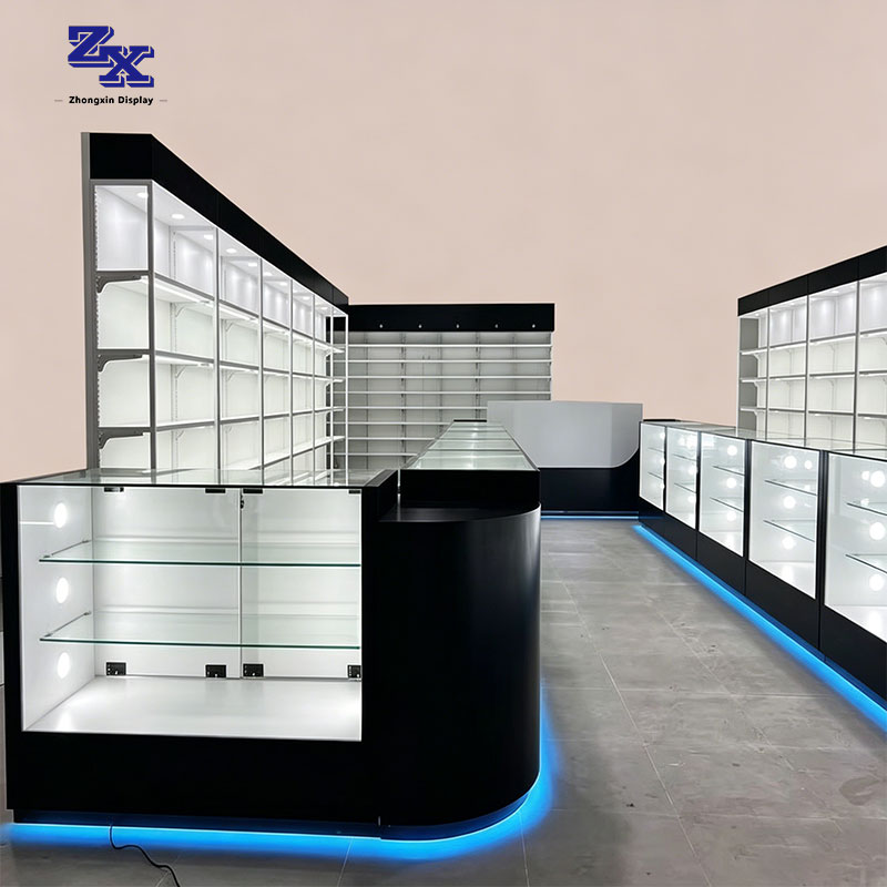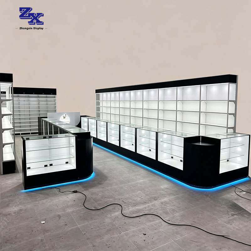 Cigarette retail store fitting display shelves and display cabinets design and manufacturing for cig