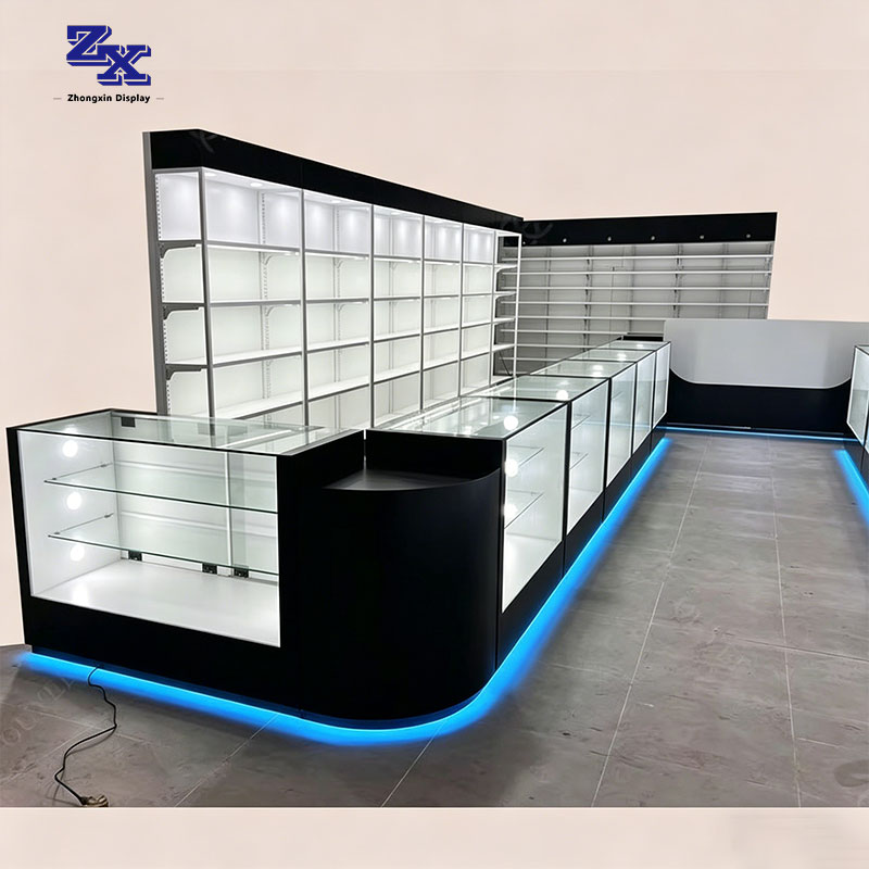 Glass display cabinets retail display racks display shelf units for tobacco and liquor retail shops